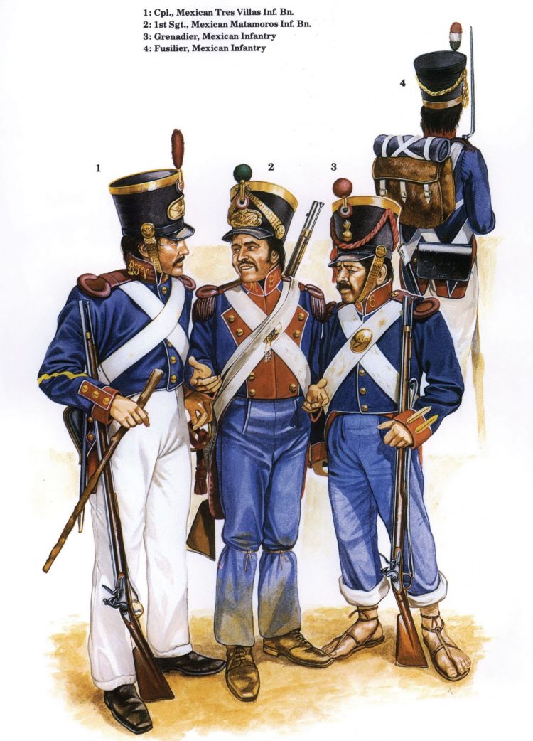 Like the colonists, the Mexicans had their regulars, the more dependable permanentes, and auxiliary units, the activo, packed with reluctant draftees.