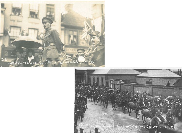 A civic ceremony and parade were held in Faversham town centre in 1915 to welcome Neame home and celebrate the award of his VC