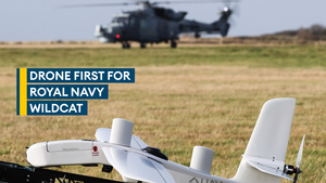 A Royal Navy Wildcat helicopter has, for the first time, used live feeds from multiple drones to help target a moving vehicle during UK trials.