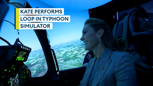 The Princess of Wales performed a loop-the-loop in an RAF Typhoon jet simulator as she met pilots on the frontline of the UK's air defences.